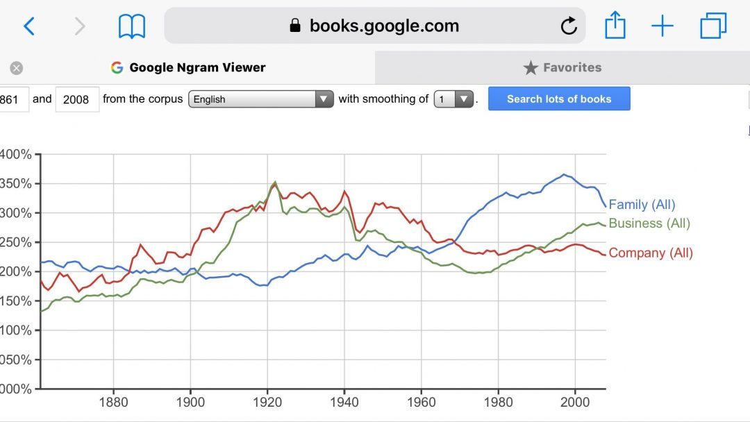Google shows how the three words ‘family’ ‘company’ and ‘business’ drastically shifted with the rise of women in the 1950s on