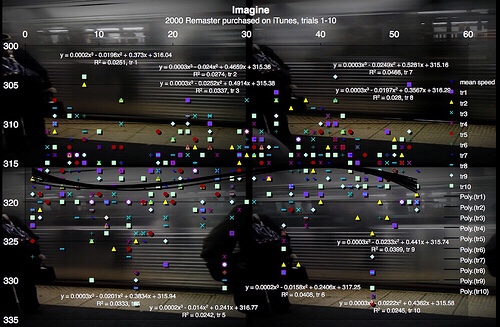 The diagram pictured here of the measurements that I took of the frequencies of exactly how fast the song is in all places in the continuous measurement.